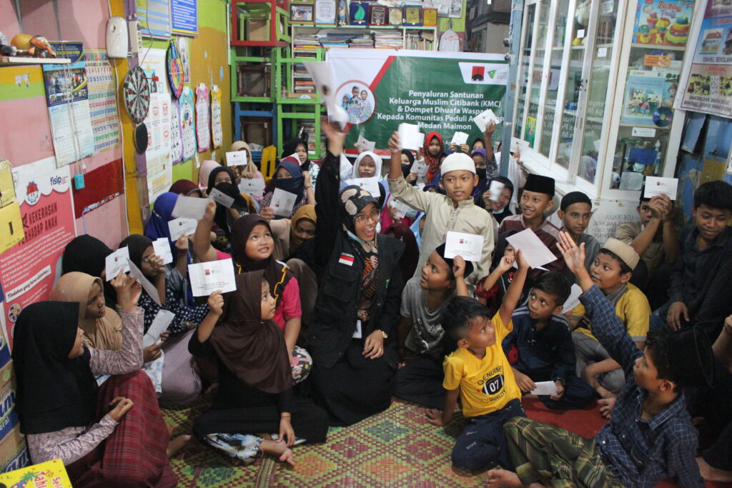 Menjelang Idul Fitri 1443 H, Keluarga Muslim Citibank (KMC) bersama Dompet Dhuafa Waspada melaksanakan penyaluran santunan di Komunitas Peduli Anak (Kopa) Jl. Syahbandar No. 23. Santunan ini merupakan bentuk sinergi antara DD Waspada dengan Keluarga Muslim Citibank dalam program Ramadan, Jumat (22/4).