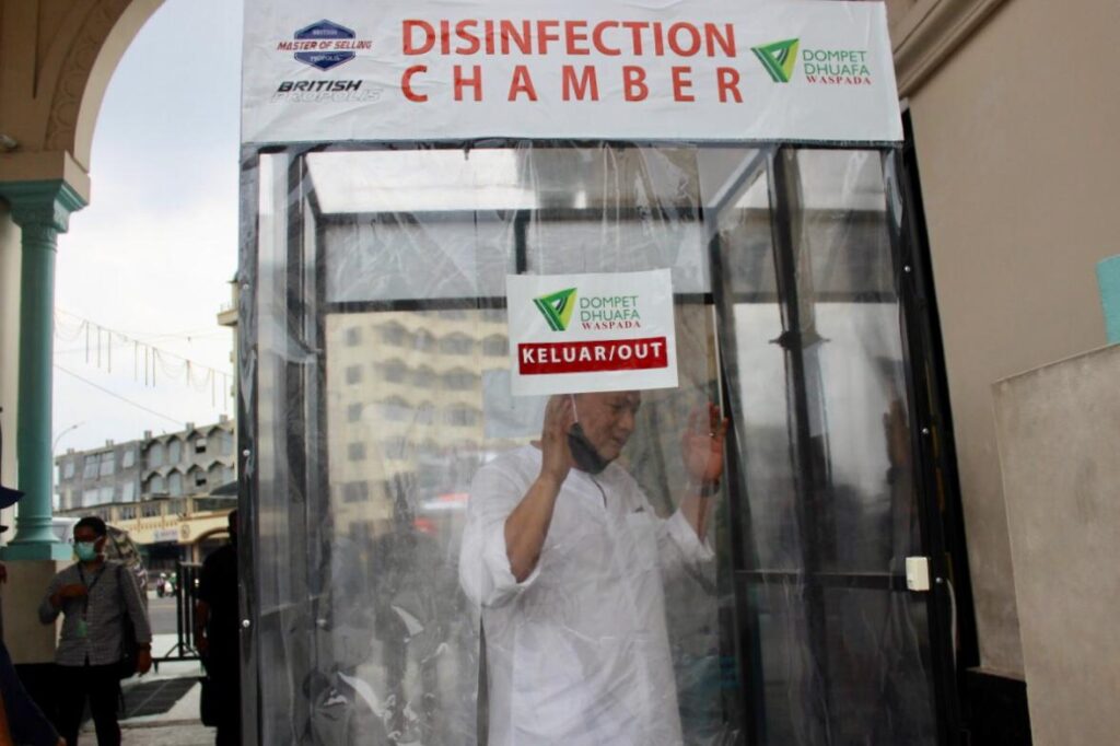 “Perlu diketahui bersama bahwa bilik sterilisasi ini insya Allah aman karena kita buat berdasarkan rekomendasi tim medis Dompet Dhuafa dan bukan disinfektan yang digunakan untuk benda-benda melainkan antiseptiknya yang biasa bisa digunakan untuk mandi,” jelasnya.