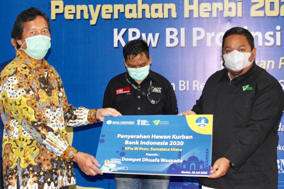 Tiga hari menjelang hari Idul Adha, Dompet Dhuafa Waspada melakukan serah terima hewan kurban dari Bank Indonesia (BI). Kegiatan serah terima ini berlangsung di kantor BI yang berada di jalan Balai Kota No.4, Kec. Medan Barat, Selasa, (27/7).